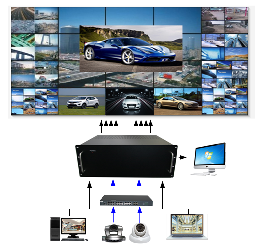 高清數(shù)字解碼矩陣自帶內(nèi)拼接、分割、開(kāi)窗、漫游功能,廣泛應(yīng)用于道路交通、平安智慧城市監(jiān)控、軍隊(duì)、工廠、學(xué)校、銀行、商場(chǎng)、大型公共場(chǎng)所、森林防火、智能樓宇等各類場(chǎng)合的視頻監(jiān)控中心。實(shí)現(xiàn)前端的網(wǎng)絡(luò)視頻信號(hào)的解碼,及對(duì)大屏顯示的控制。
